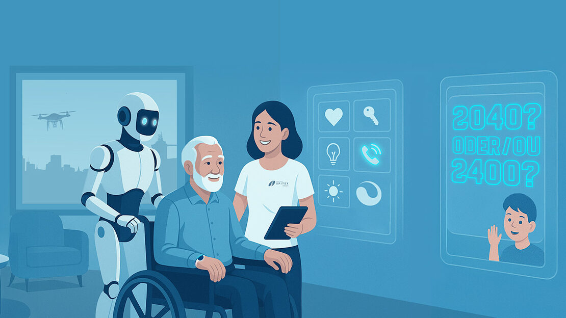 Fokus 2040 ist die Gesundheitsversorgung zu Hause integriert und digital Die Co-Geschäftsführenden von Spitex Schweiz werfen einen Blick auf das Zukunftsbild «Care@Home 2040» und damit auf Gesundheitsverso...