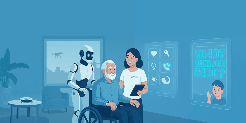 «Wie Pflege im Jahr 2040 aussehen wird, weiss niemand genau», fährt Sabina Crameri mit einem Blick in die Zukunft fort. «Vielleicht liefern Drohnen Medikamente durchs ‹Katzentörli›, vielleicht werden KI-gestützte Vitalüberwachung in intelligenten Wohnungen oder implantierte Sensoren allgegenwärtig sein – und Spitex-Mitarbeitende sehen live übers Tablet oder die interaktive Brille, wie es ihren Klientinnen und Klienten geht.» Technologien wie Robotik und Augmented Reality lassen weiteren Raum für Spekulation. So oder so ist Sabina Crameri überzeugt: «SmartLife Care wird auch 2040 ein integraler Bestandteil des Pflegekonzeptes sein.» Welche physischen Produkte mit welchen Funktionen das Unternehmen dann anbiete, werde sich zeigen. «Aber einen Notrufknopf wird es in irgendeiner Form immer brauchen.»