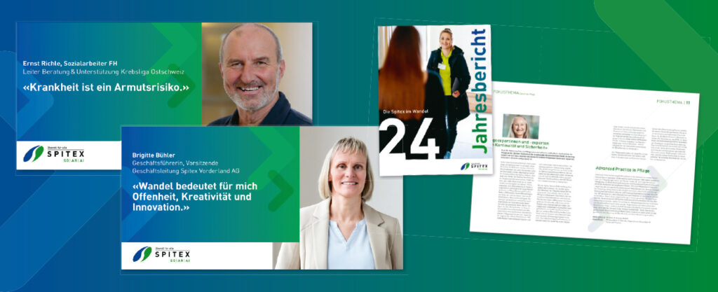 Ein herausstechendes Merkmal des Social-Media-Auftritts: Das systematische Vorgehen ist ein herausstechendes Merkmal des Auftritts des Verbands – und begann 2020 mit einer Umfrage unter den Mitgliedern, 2023 folgte eine zweite. Die Umfragen ergaben, dass 41 Prozent der 34 teilnehmenden Spitex-Organisa­tionen Social Media nutzen, ein Drittel davon ohne schriftliches Konzept. Und dass unter anderem der Social-Media-Auftritt des Verbands ausgebaut werden sollte. Systematisch war auch der Erwerb von Know-how für dieses Unterfangen: Die Kommunikationsberaterin ­sowie eine Grafikerin wurden an Bord geholt und Dominik Weber-Rutishauser absolvierte ein CAS zum Thema. Daraufhin wurden ein Kommunikationskonzept, ein LinkedIn-Profil sowie ein Jahresredaktionsplan ­erstellt – und jährlich wird ein Fokusthema festgelegt; aktuell lautet dieses «Wandel». Systematisch ist auch das einheitliche «Look and Feel» aller Beiträge und weiterer Kommunikationskanäle (vgl. Bild). Und natürlich wird regelmässig der Erfolg überprüft, etwa über Rückmeldungen aus Vorstand und Basisorga­nisationen.