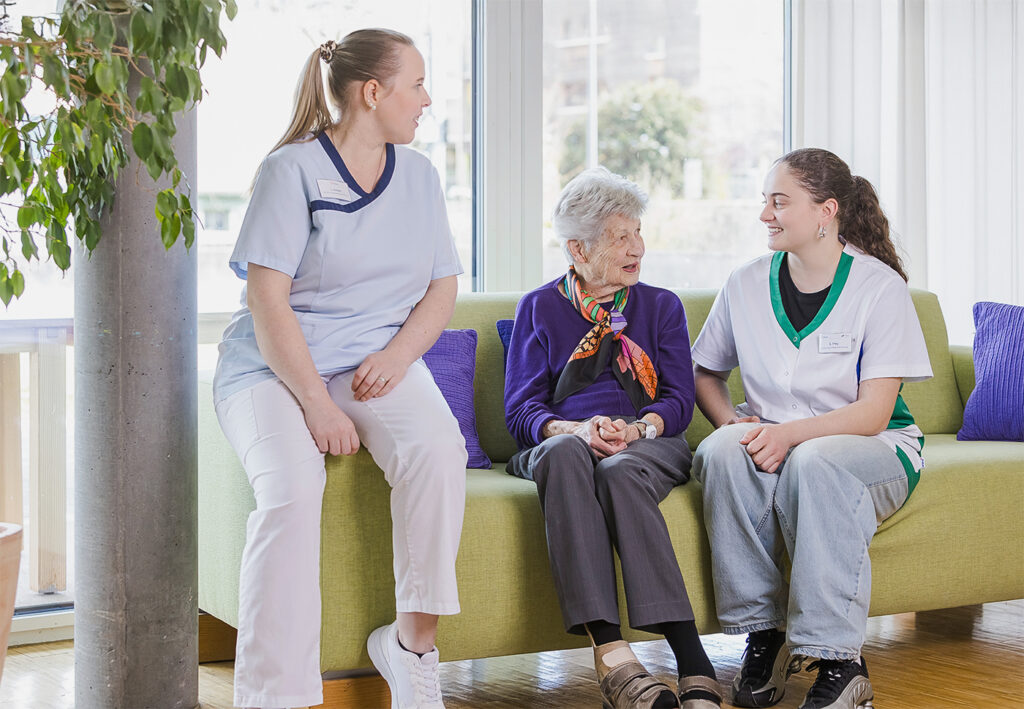 Durch die Vereinigung von Spitex und Heimen lasse sich auch das Ziel besser verfolgen, für Durchlässigkeit zwischen den Settings zu sorgen – also für einen flexiblen Wechsel von der Spitex ins Heim und umgekehrt. Beispielsweise bietet die Flury Stiftung temporäre Aufenthalte im Heim an. «Diese dauern in der Regel 14 bis 25 Tage. Bei Bedarf sind aber auch längere befristete Erholungsphasen möglich», erklärt Anna Katharina Castelberg, Bereichsleiterin Altersheim Jenaz. «Temporärzimmer werden beispielsweise nach einem Spitalaufenthalt genutzt – im Prättigau spricht man vom ‹Erstarchen›, bevor man nach Hause zurückkehrt.» Auch zur Entlastung pflegender Angehöriger würden temporäre Aufenthalte genutzt oder als ‹Schnuppertage› vor einem potenziellen Umzug ins Heim. Um den Übergang für die Betroffenen angenehm zu gestalten, werden sie bei Eintritt ins Heim oft durch die Spitex begleitet.